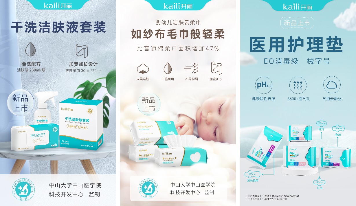 健朗醫用攜旗下品牌開麗新品亮相大會,在新發展格局下謀求共同發展;此次亮相新品主要為醫療器械耗材及衛生防護用品:干洗潔膚液套裝、嬰幼兒潔膚云柔巾、械字號衛生巾(醫用護理墊)等,此次參會也印證了開麗品牌在醫療衛生、生物醫藥板塊的探索和投入。