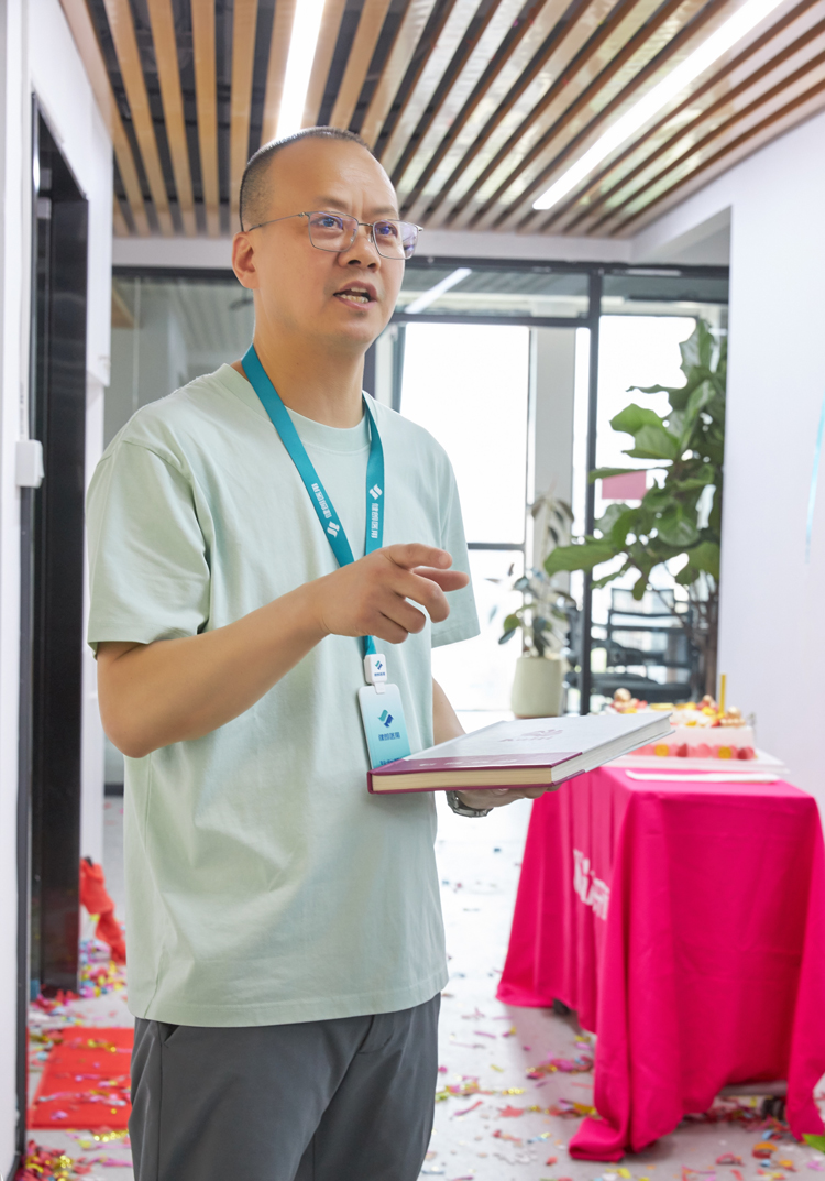 在一片歡樂與祥和的氛圍中,領導們共同拿起餐刀,緩緩切入那象征著美好祝福與新起點的蛋糕。每一刀都像是在為公司的嶄新未來開辟道路,每一塊蛋糕的分享,都傳遞著對新辦公環境的喜悅與對未來發展的無限憧憬。