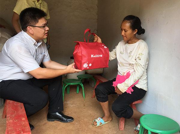 廣州開麗科技有限公司副總經理朱道鋒 慰問貧困產婦送上開麗待產包